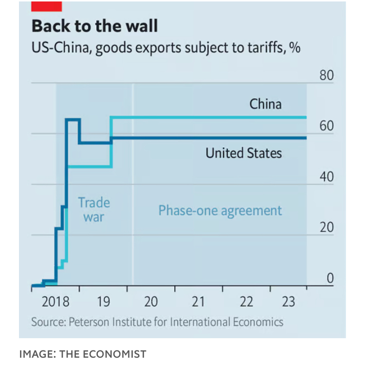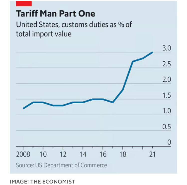 By 2021 American duties were worth 3% of the country’s total import value, double the level when Mr Trump took office. Tariffs on Chinese imports rose from 3% to 19%,