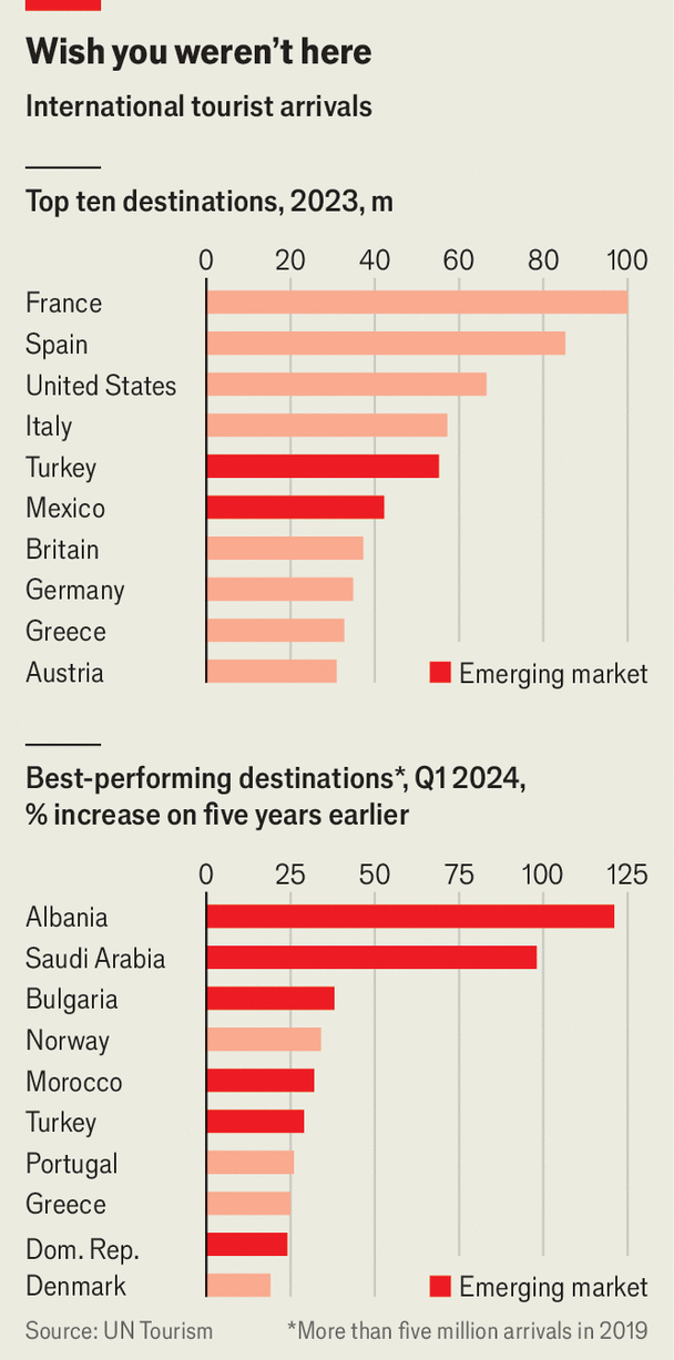 가능한 한 환영받지 못하는 관광이 되지 않도록 노력할 필요가 있습니다. 컨설팅 업체 옥스퍼드 이코노믹스의 클로이 파킨스는 관광객이 현지 물가를 올리면 임금도 인상될 것이라고 지적합니다. 정부는 인프라를 구축하고 계획 규칙을 완화하여 여행객을 수용하기 위해 더 많은 일을 할 수 있습니다. 예를 들어 바르셀로나의 경우 주택 공급이 외국인 및 현지 수요에 부응한다면 임대료가 빠르게 상승하지 않을 것입니다. 실제로 이탈리아와 최근에는 멕시코에서 일어난 것처럼 관광 수입이 인프라와 고부가가치 부문에 투자될 수 있다는 것을 역사는 보여줍니다. 대부분의 경우 여름 휴가는 누구나 즐길 수 있습니다.