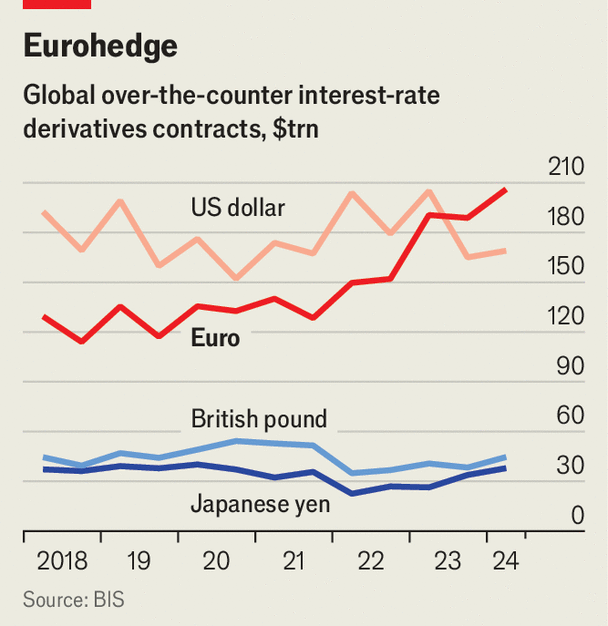 유럽 관료들은 대륙이 미국과 중국에 대한 의존도를 줄이고자 합니다. 더 국제화된 유로는 국가 정부의 차입 비용을 낮출 것이며, 이는 방위비 지출이 증가하는 시기에 극히 유용할 것입니다. 현재로선 이러한 야심을 공개적으로 밝히는 정치인은 거의 없습니다. 그들은 그렇게 하면 트럼프 행정부의 분노를 유발할 것이라는 점을 잘 알고 있기 때문입니다. 하지만 이는 중요하지 않습니다. 국제 금융은 자체 논리를 가지고 있으며, 화려한 연설이 없더라도 통화를 무너뜨릴 수 있습니다. 아테네인들에게 물어보라. ■
